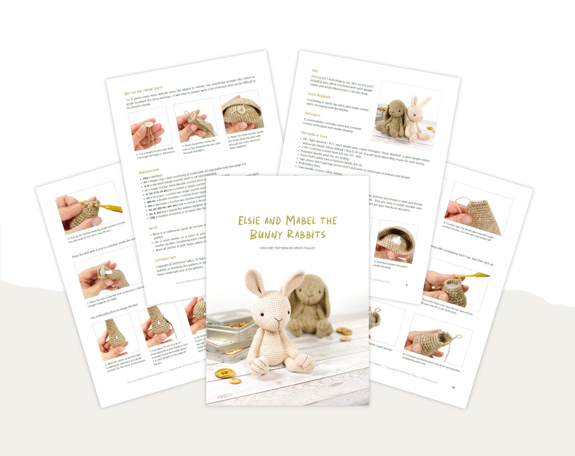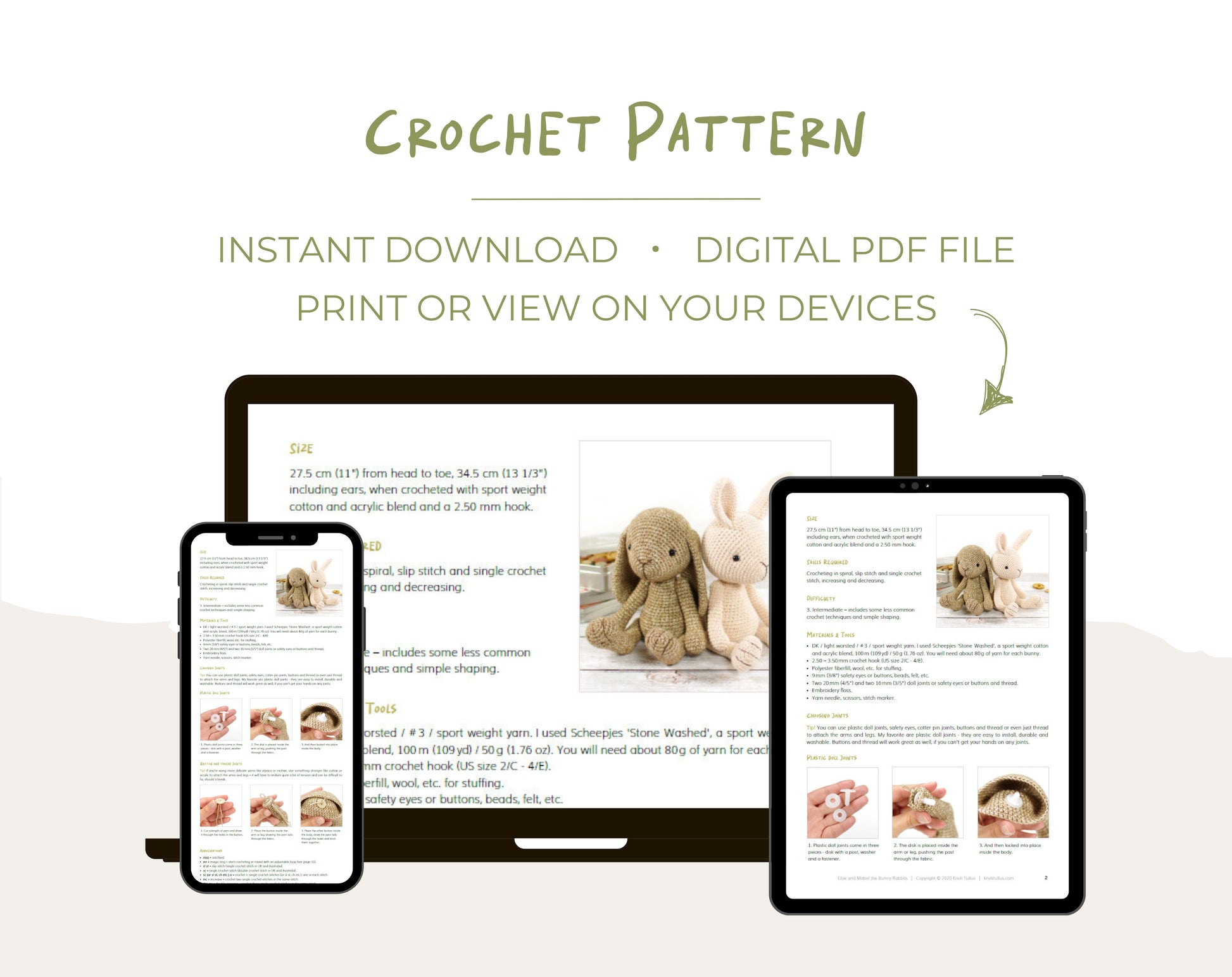 With this written crochet pattern you can make your own cute 4-way jointed amigurumi bunny with straight or floppy ears. I tried to keep beginner toy makers in mind and included detailed instructions, many step-by-step photos and useful tips and tricks.