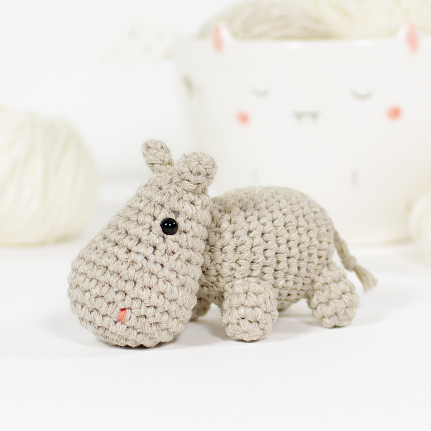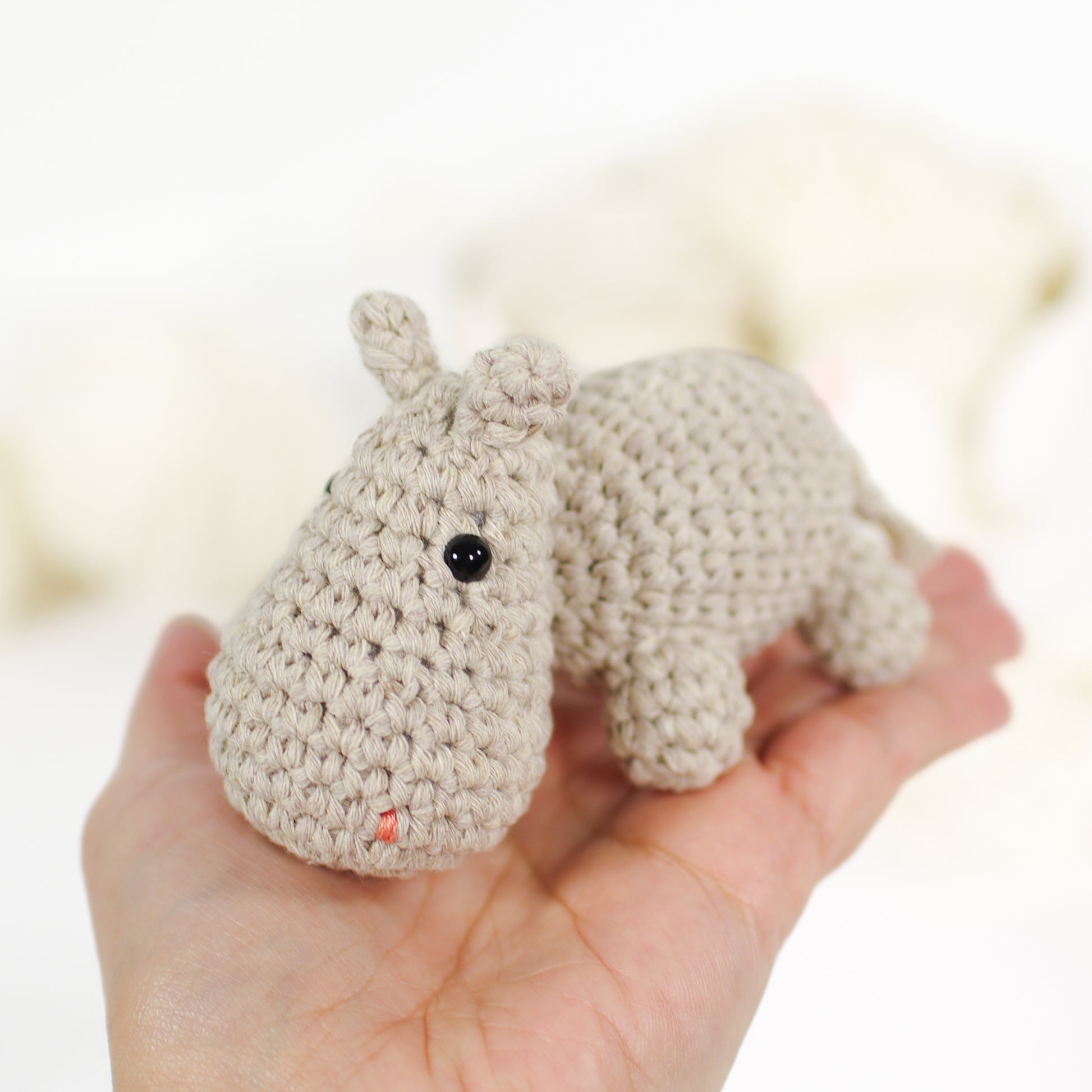 With this crochet pattern, you can make an adorable little hippo with a huge nose and stumpy little legs, small enough to sit on your palm.