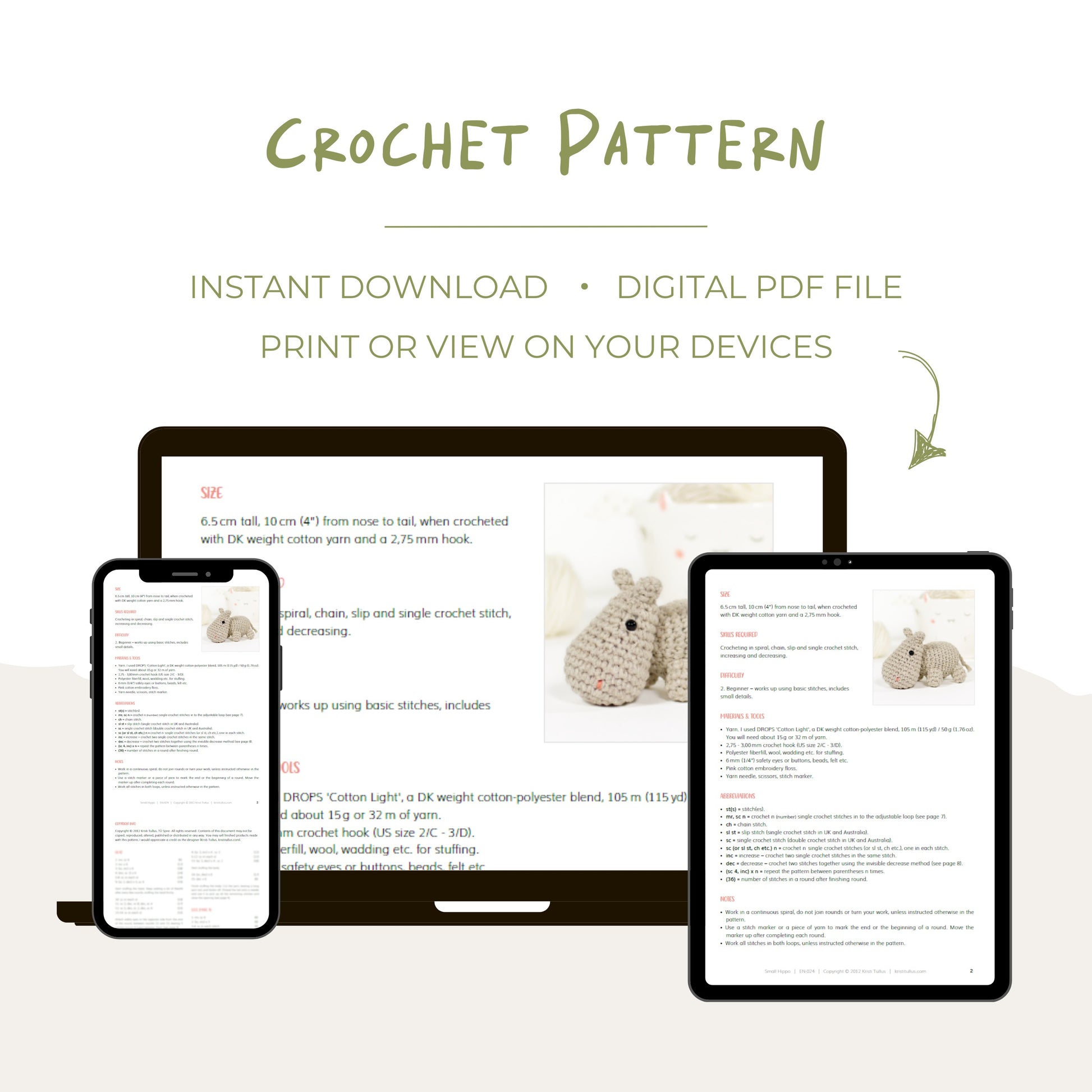 Crochet Pattern - Small Hippo